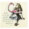 - Napkins feature an illustration of Alice holding a bright pink flamingo and a quotation from Alice in Wonderland