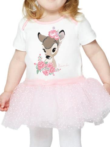 This Bambi Costume Bodysuit best fits 3 – 6 months. All Disney Bambi fans will adore this stunning Bambi bodysuit and tutu costume. The Bambi cotton white bodysuit has a baby pink trim with a classic illustration of Disney Bambi the deer with cute pink flowers. The Bambi Costume Bodysuit also includes a ruffled pink tutu and elasticated pink bow.