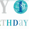 Card Happy Birthday Baner. The Card shapes spell Happy Birthday in a contemporary font. The Shades of Blues, Silver 7 Green compliment this 1st birthday theme perfectly. The Centre of the banner includes a disc printed with 1st. The Blue Dots 1st Birthday Banner is 1.8m long. use tacks or tape to attach this banner to walls. The Blue Dots 1st Birthday Banner looks great along the front of your buffet table too. The Blue Dots 1st Birthday Banner could be reused for a sibling or perhaps gifted to a friend after use.