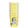 Every party table needs some party cups. These Bluey Party Paper Cups are perfect, featuring Bluey & Bingo plus family. The Bluey Party Paper Cups are standard size – holding 273mls of your favourite cold party drinks. The high-quality print will help you create a beautiful Bluey tablescape. The Bluey Party Paper Cups could be stacked at the end of the buffet table or each party guest’s place setting. Order extra for thirsty party guests. The Bluey Party Paper Cups are sold in sealed packs of 8. Matching Bluey table covers, cups & napkins are available here.