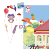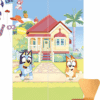 This wonderful Bluey Party Scene Setter Kit is perfect as a backdrop to take some selfies at your birthday party. It’s huge! The Bluey Party Scene Setter Kit measures 140xm x 2m. The pack includes four posters made of paper to attach to your wall. The four posters create the Scene Setter. The pack also includes 12 Bluey-themed selfie props for some fun snaps. The props are made of card and attached to little sticks to use.