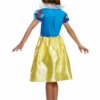 Pretty Disney Princess dress. The Disney Snow White dressing up costume is perfect for any Snow White fan. The Official Disney Princess costume is a pretty yellow satin skirt with a bright blue bodice. The dress has a stand-up colour with pretty red details on the sleeves. The with organza detail to the top. The dress has capped sleeves and a bodice has a Snow White cameo in the centre.