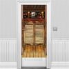 - The banner can transform any door into a Wild West entrance with its rustic design featuring swinging doors, wooden planks, and signage.