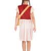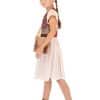 - A four-piece costume features a dress with a printed knitted pattern to the bodice