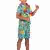 - Costume includes shirt, shorts, and lei