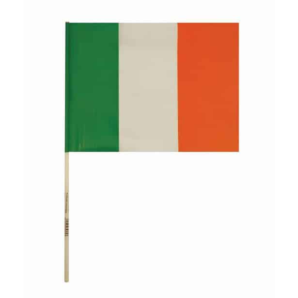 Made from durable, lightweight plastic, these Ireland flags are ideal for waving in crowds, decorating party venues or handing out at parades and community events. The sturdy wooden stick offers a comfortable grip, making them suitable for both adults and children. At 21 x 14cm, each flag is perfectly sized for easy handling while still making a bold visual impact.