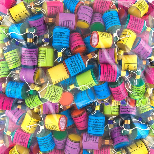 - Party poppers in assorted colours