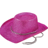 Make a bold and shimmering statement with our bright Pink Glitter Cowboy Hat! Crafted with a vibrant pink glitter finish, this hat is guaranteed to make you the glitter of any party or gathering.