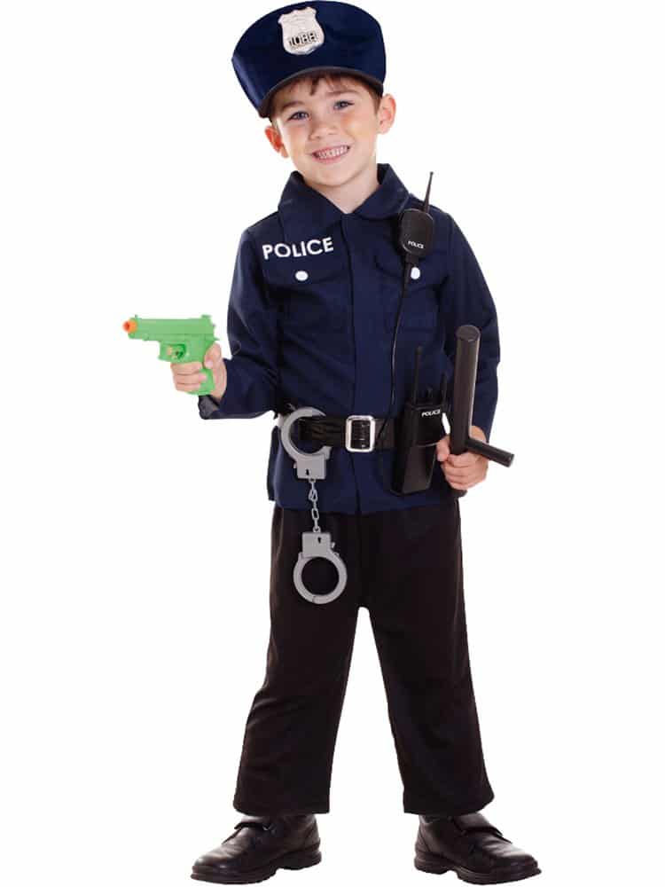 - Includes : Top, belt, hat, badge, handcuffs, radio, gun and baton.
