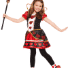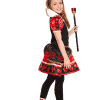 This Queen of Hearts Costume will delight children and teachers alike. The Queen of Hearts Costume regal costume includes a pretty Queen of Hearts dress with red glittery hearts, gold edging and puff sleeves and a smart high collar. The Queen of Hearts Costume includes a pair of black footless tights and a gold crown attached to a comfortable to wear headband.