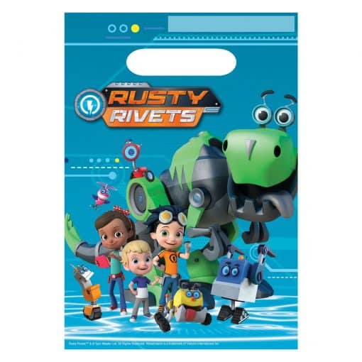 Fill these Rusty Rivets Party Plastic Loot Bags will treats for your party guests to take home. The plastic bags have integrated carry handles. The Rusty Rivets Party Plastic Loot Bags are 17cm x 23cm.