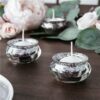 Each candle holder measures 3cm tall and approximately 6cm wide, providing an ideal size for displaying tea lights. The polished design and silver colouring ensure these holders will complement any table setting, creating a mesmerizing ambience for your guests.