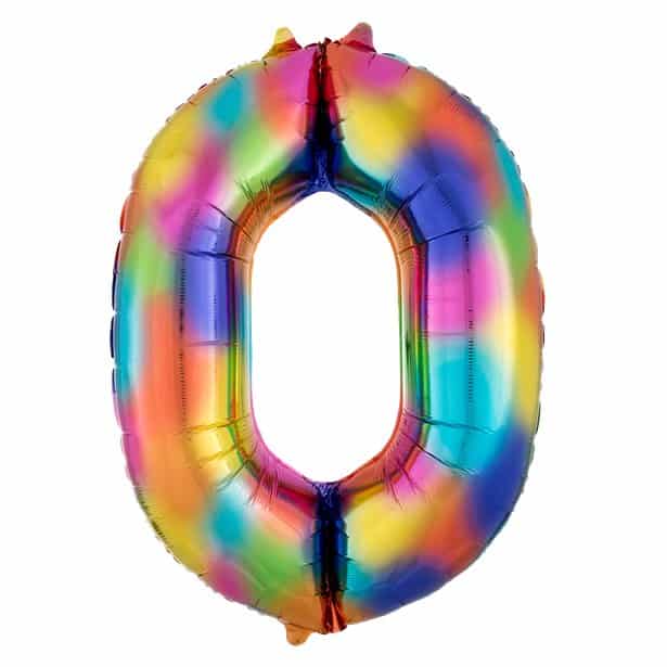 Rainbow Splash Number 0 Foil Balloon