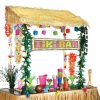 Assemble the tubing to create a framework for your Tiki Bar, adjust the size by adjusting the number of poles used. The maximum height that can be created is 1.4m high and the width maximum is 1.4m. Designed to be reusable. The pack includes a flower garland to add to the frame along with a tiki-style roof cover. Place the frame around a suitable table and decorate the table to create a fabulous bar area at your party. The Tiki Bar Hut is also great for a sweet table or an entrance table at your event.