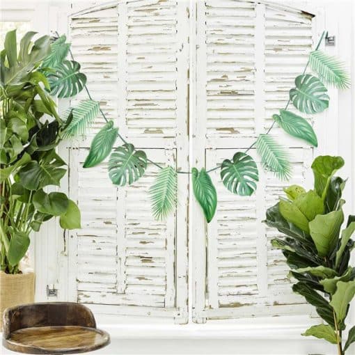 - Palm Leaf Paper Garlands feature fancy palm leaves that add a summery vibe to your party decor