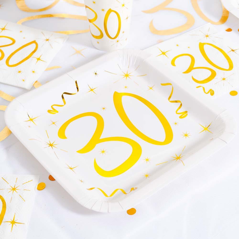 White & Gold Sparkle 30th Paper Plates